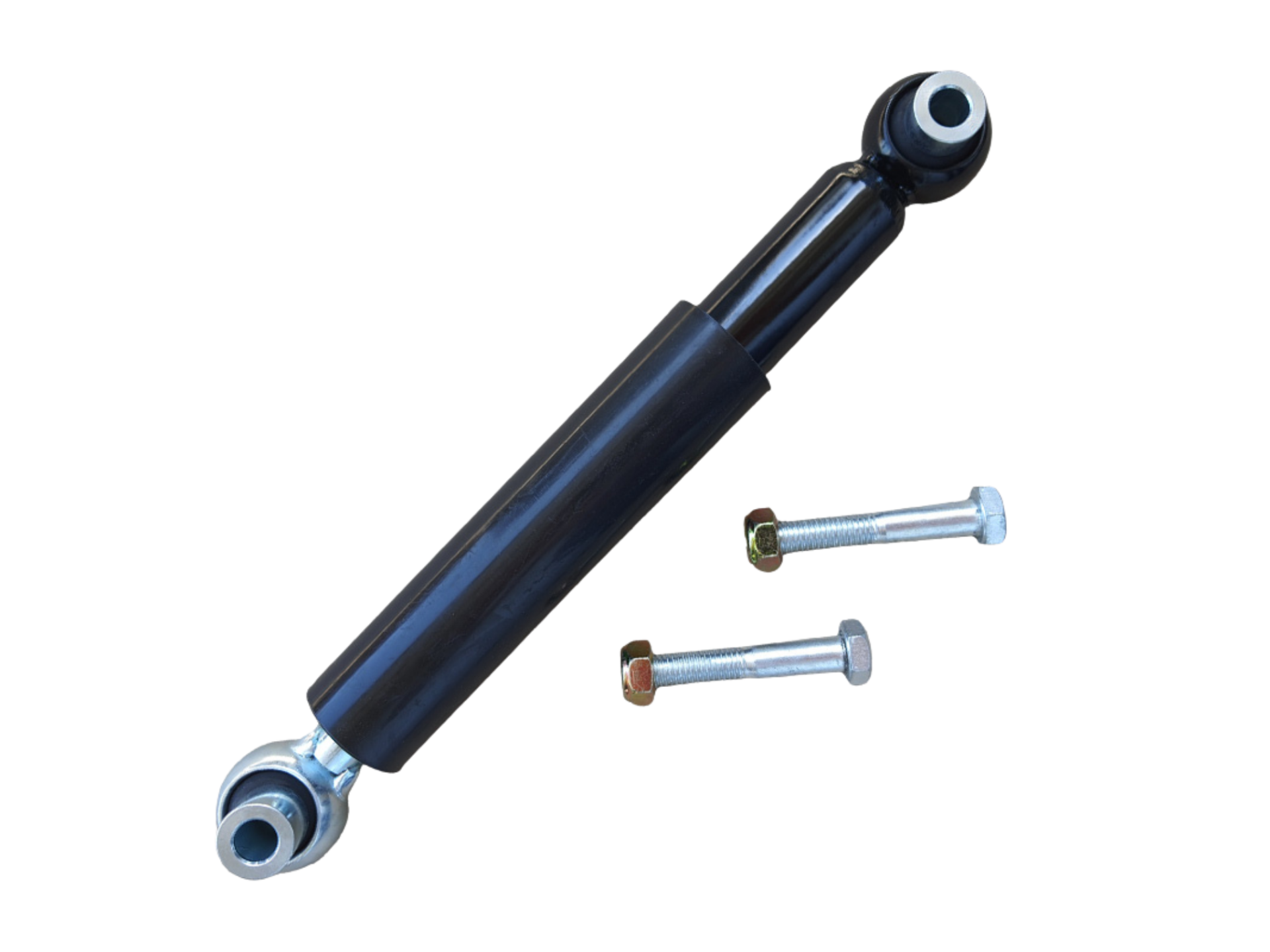Amortyzator osi UNIWERSALNY, idealny do osi pojedynczych o masie 1500 kg oraz osi tandem o masie 3000 kg. Zapewniający długość ściśniętą 255 mm i rozciągniętą 410 mm, ze skokiem amortyzatora 155 mm. Średnica śrub montażowych wynosi 12 mm, wyposażony w śruby montażowe M12 z nakrętkami. Masa własna amortyzatora to 1,0 kg.